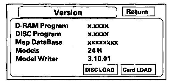 The D-RAM Program version should always be greater than or equal to the Disc Program version. The mapped database version is the date of the database on the DVD. The Model code is 24H ('04 model) or 26H ('05-06 models), and is for factory use only.