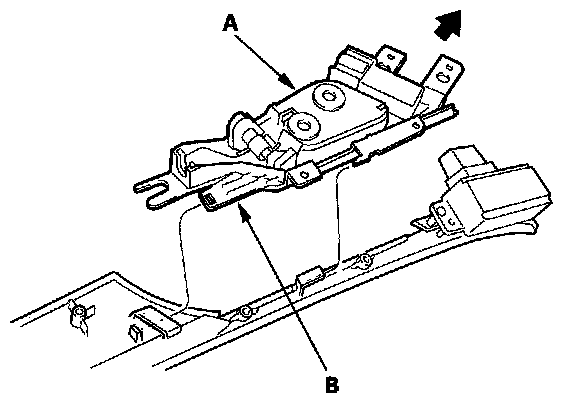 5. If necessary, remove the door glass inner weatherstrip (A) from the door panel (B) by pulling it down.