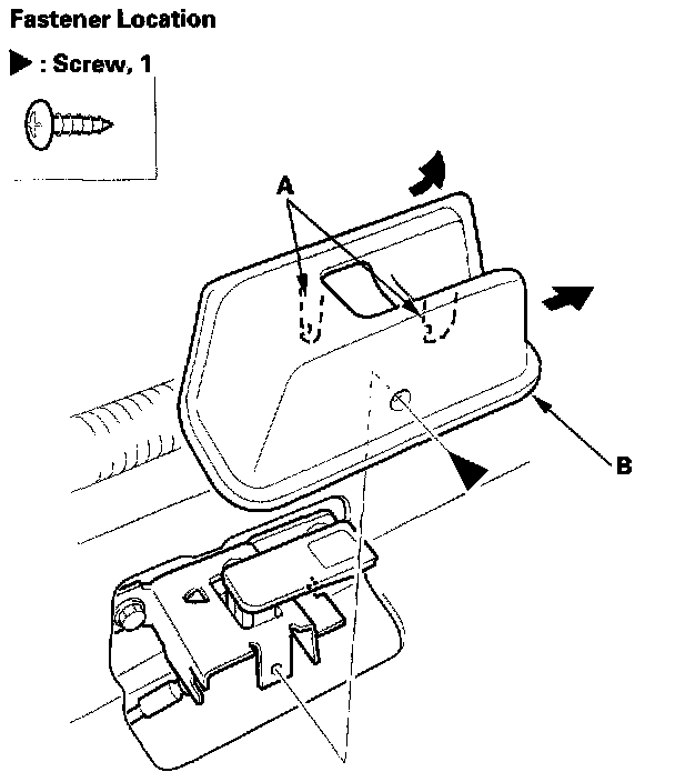 2. Remove the screw and hooks (A), then remove the fuel fill door opener cover (B).