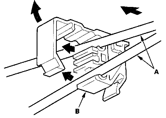 1. Remove the torsion bars (A) from the torsion bar center clip (B).