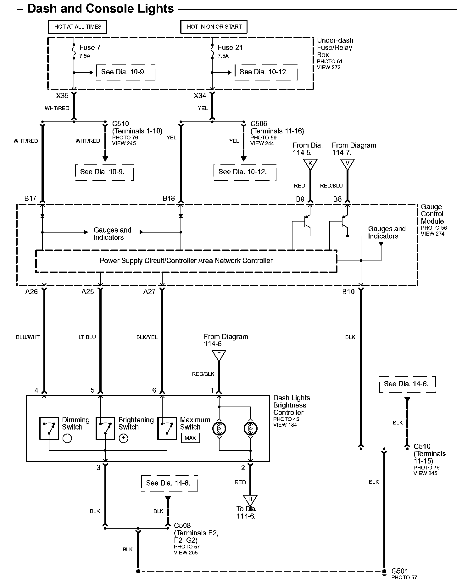 Connector Views: Connector terminal views (references to VIEWS) referred to within these diagrams can be found at Connector Views by View Number. Connector Views By View Number