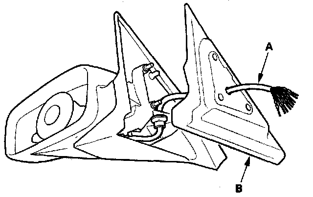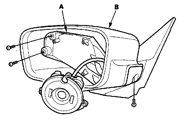 4. Remove the three Torx screws, and separate the power mirror actuator (A) from the housing (B).