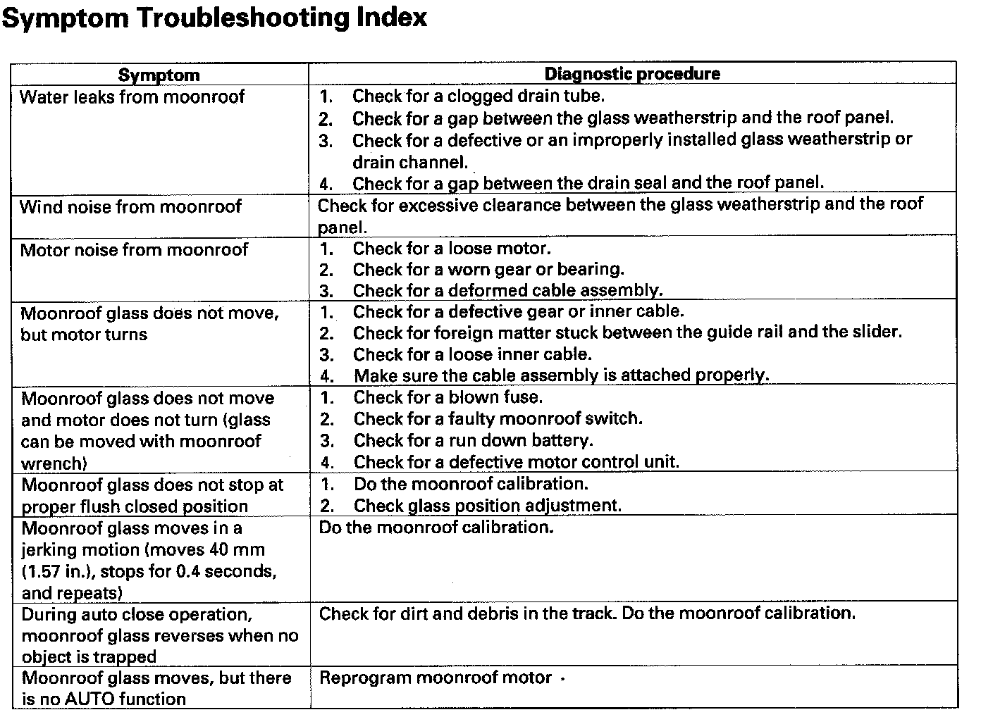 Symptom Troubleshooting Index: