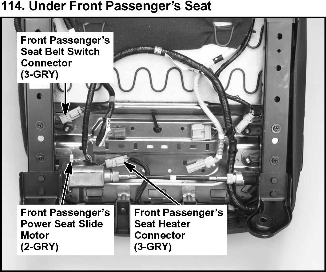 114. Under Front Passenger's Seat: