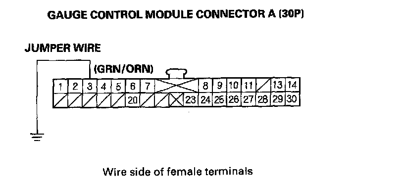 13. Connect gauge control module connector A (30P) terminal No. 3 and body ground with a jumper wire.
