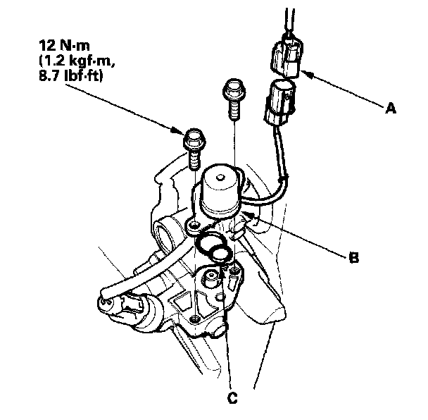 3. Install the parts in the reverse order of removal with a new O-ring (C).