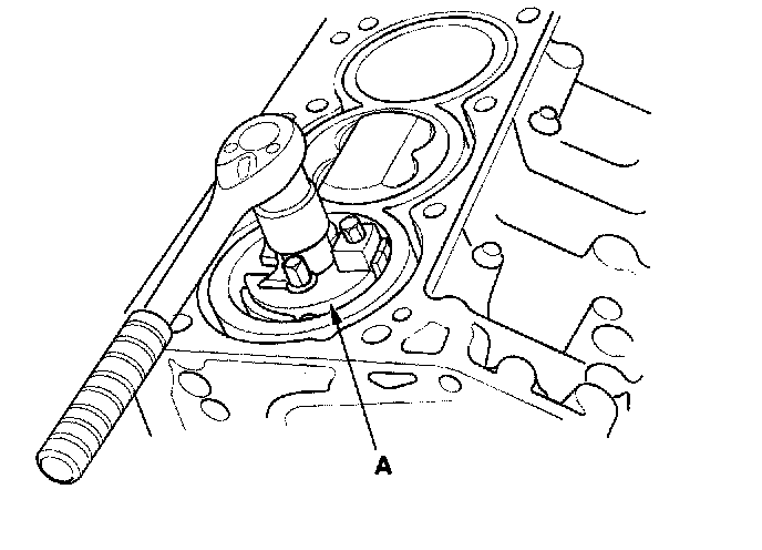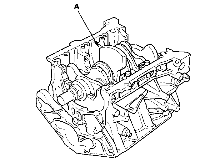 20. Lift the crankshaft (A) out of the engine block, being careful not to damage the journals.