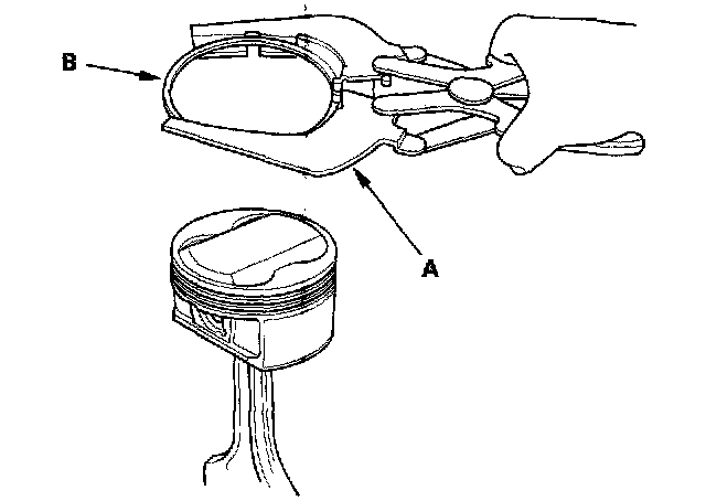 5. Measure the piston ring end-gap (B) with a feeler gauge: