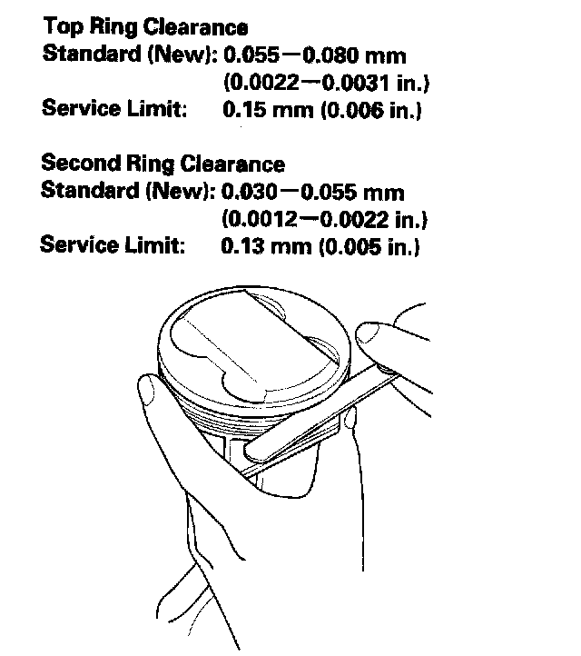 7. After installing a new set of rings, measure the ring-to-groove clearance.