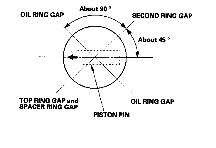 ^ If the gap is too large, recheck the cylinder bore diameter against the wear limits. If the bore is over the service limit, the engine block must be rebored.