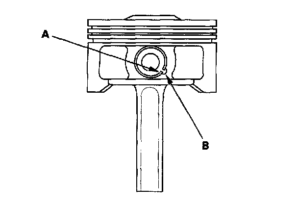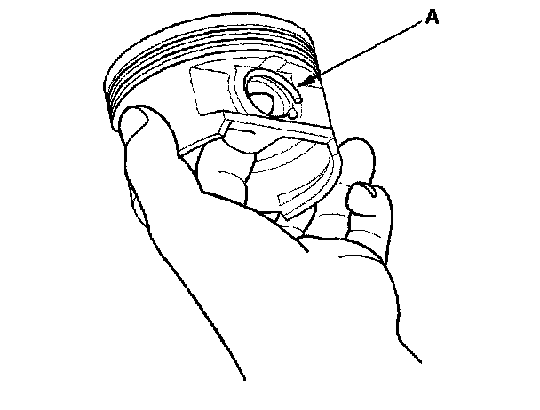 1. Install a piston pin snap ring (A) only on one side.