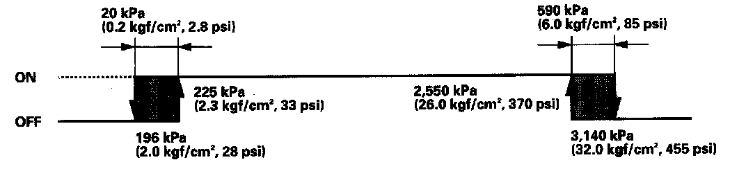 If the refrigerant pressure goes above 1, 470 kPa (15.0 kgf/sq.cm, 213 psi), the A/C pressure switch closes to signal the ECM/PCM to change the speed of the A/C condenser fan and radiator fan to high when the refrigerant pressure drops below 1, 075 kPa (10.1 kgf/sq.cm, 156 psi), the A/C pressure switch opens to signal the ECM/PCM to change the speed of the A/C condenser fan and radiator fan to low.