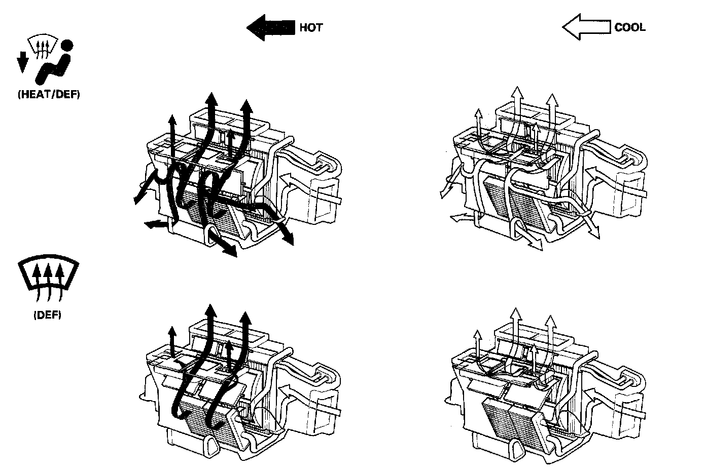 System DescriptionThe air conditioning system removes heat from the passenger compartment by circulating refrigerant through the system.