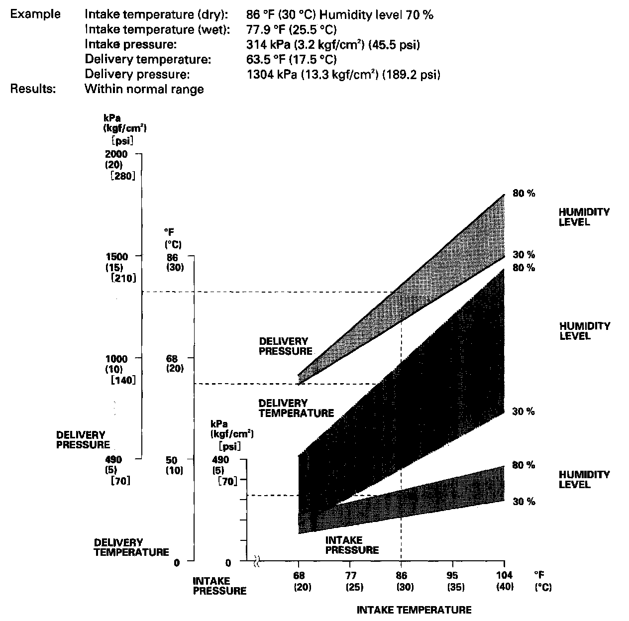 - Mark the intake temperature (ambient air temperature) along the bottom line.
