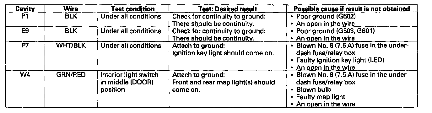Control Unit Input TestNOTE: Make sure the ignition switch is OFF before disconnecting the under-dash fuse/relay box connectors.