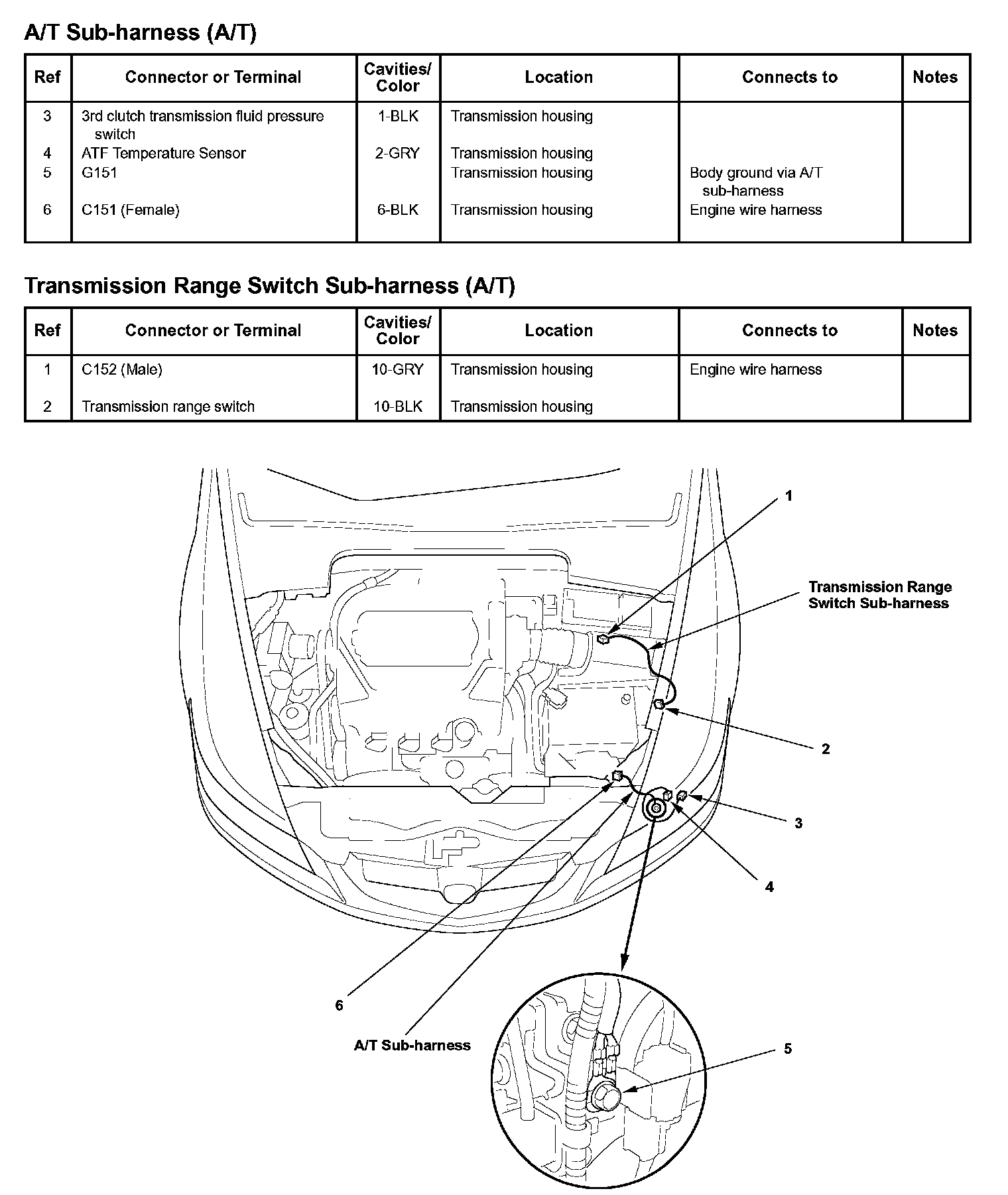 A/T Sub-harness (A/T)/Transmission Range Switch Sub-harness (A/T):