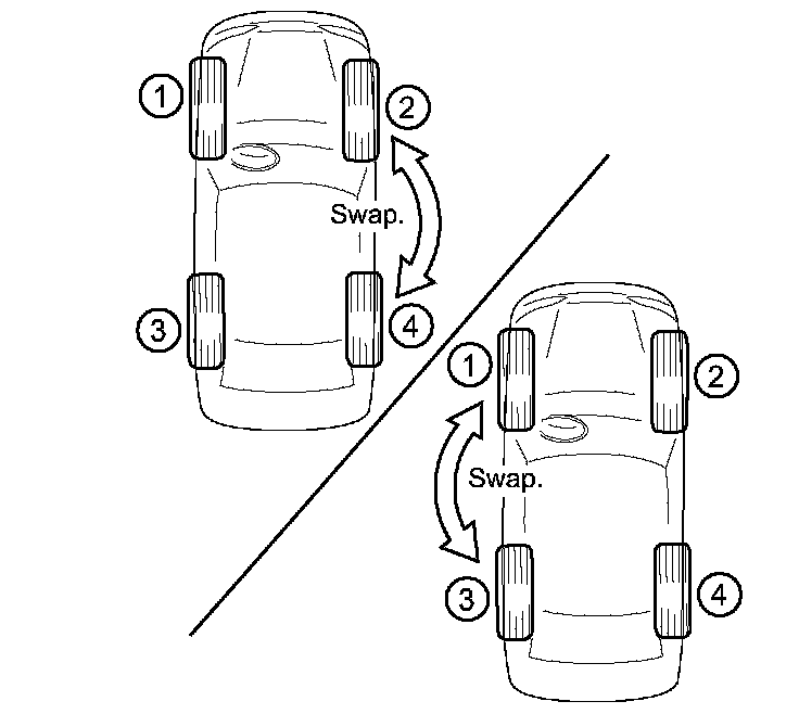 2. Swap tires 1 and 3 on the driver's side of the vehicle, and test-drive again.