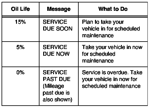 When the oil life reaches 15%, you�ll also see a two-part maintenance item code.