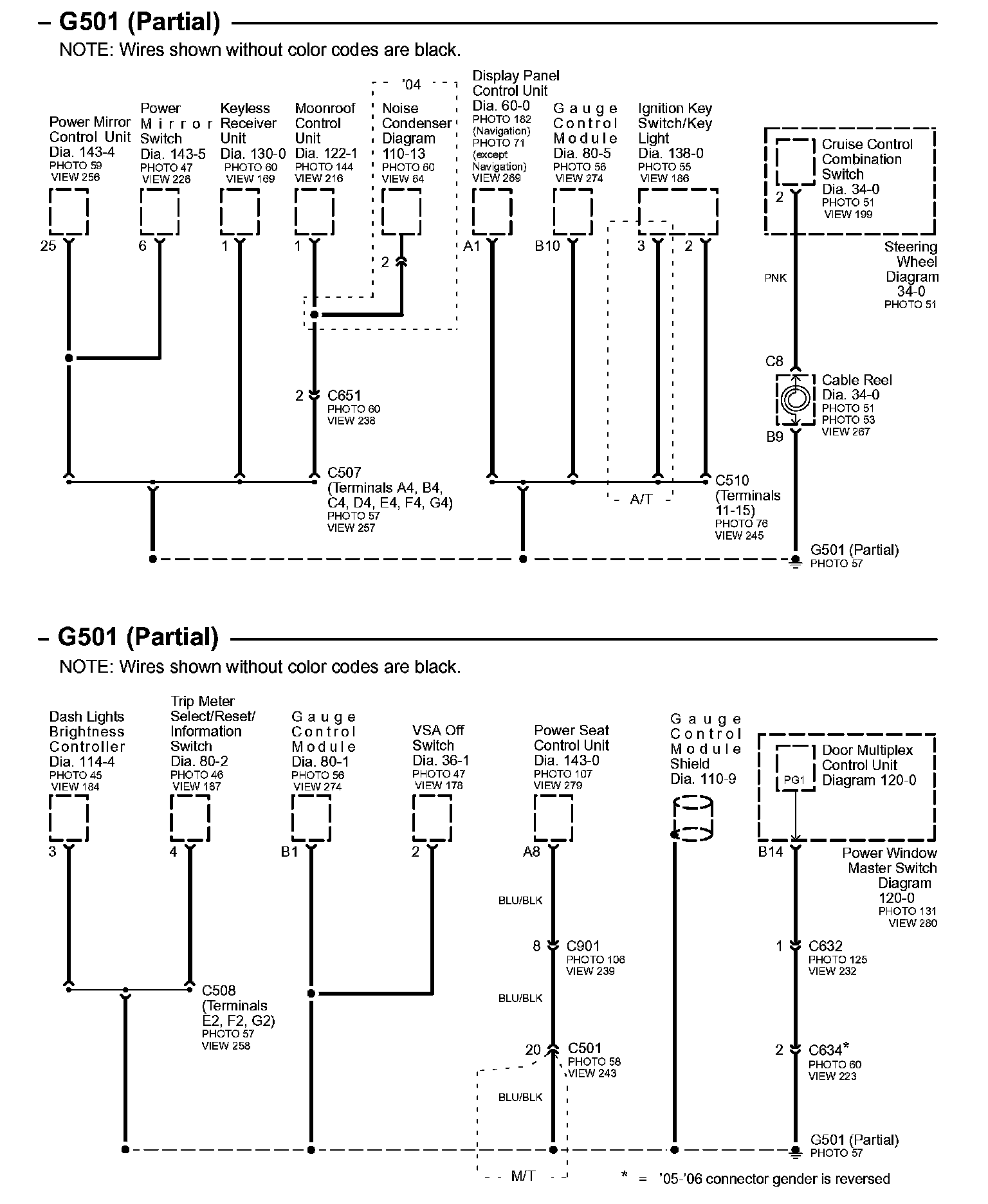 Connector Views: Connector terminal views (references to VIEWS) referred to within these diagrams can be found at Connector Views by View Number. Connector Views By View Number