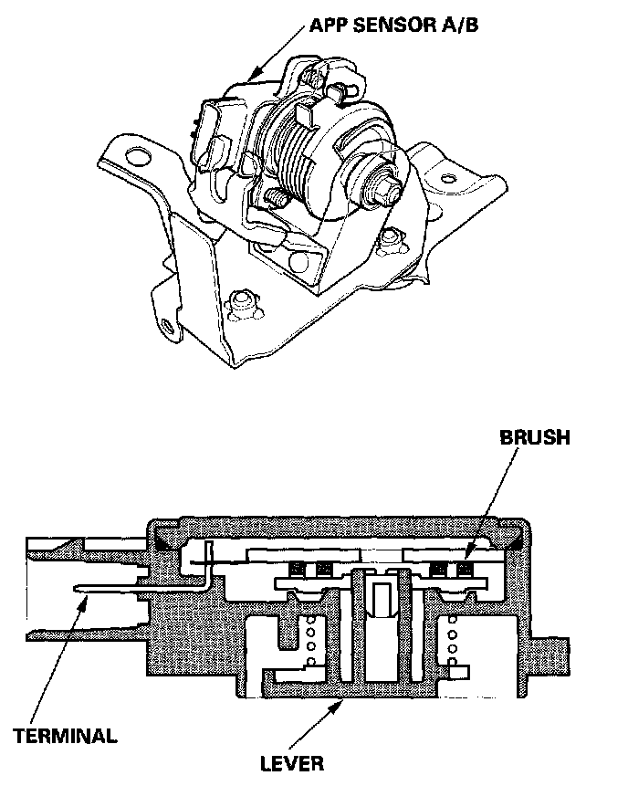 As the accelerator pedal position changes, the sensor varies the signal voltage to the ECM/PCM.