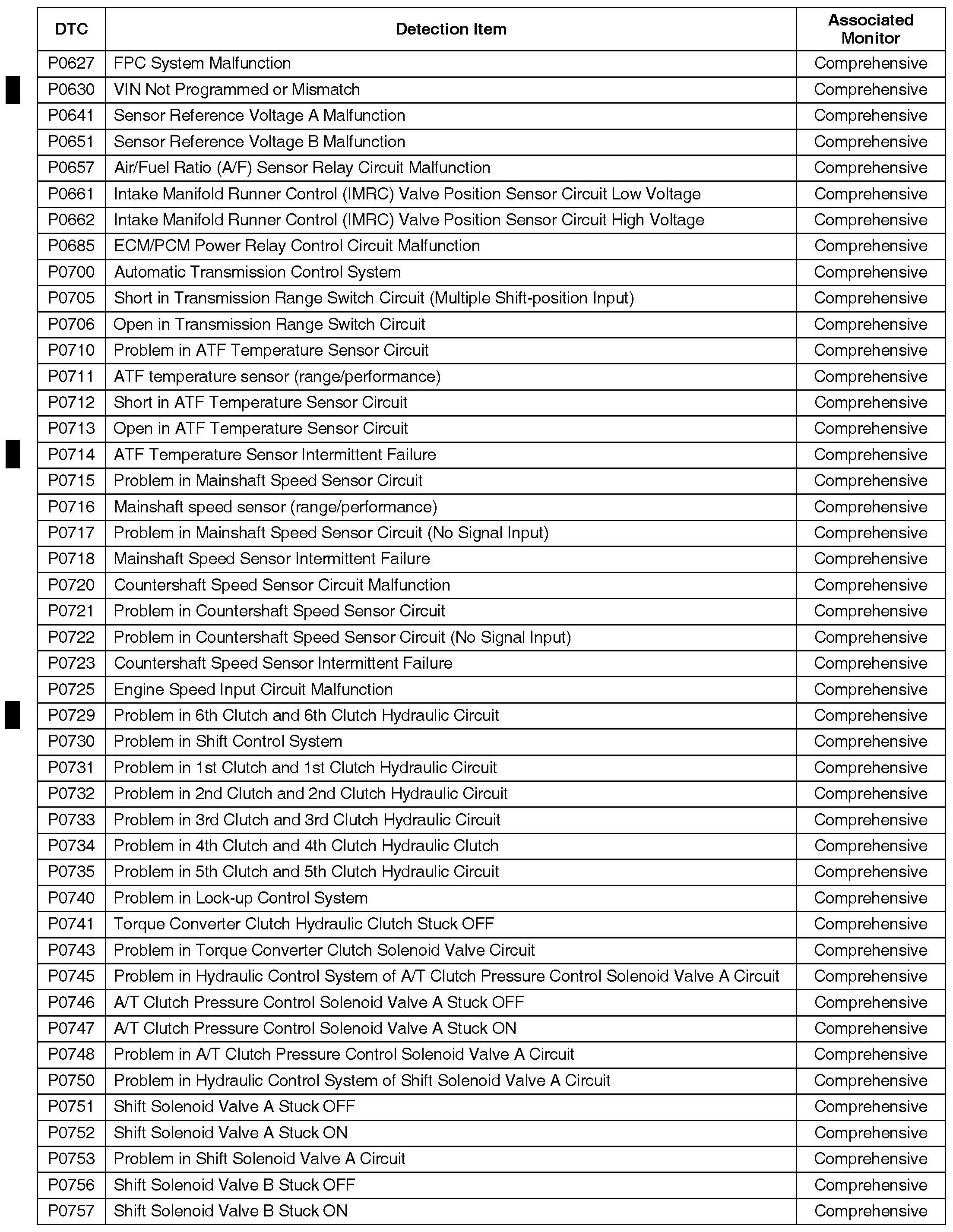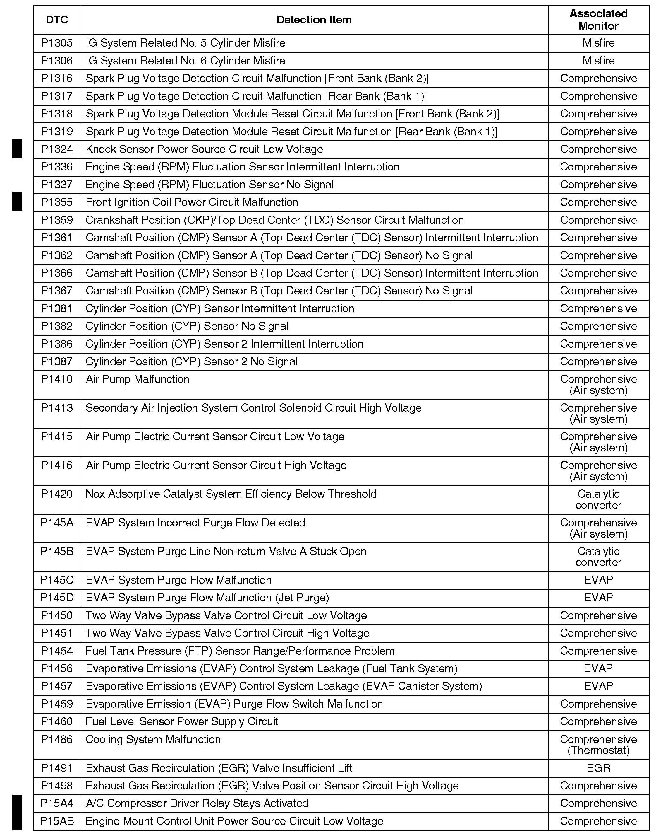 Numerous DTCs were added. Refer to the list for details.