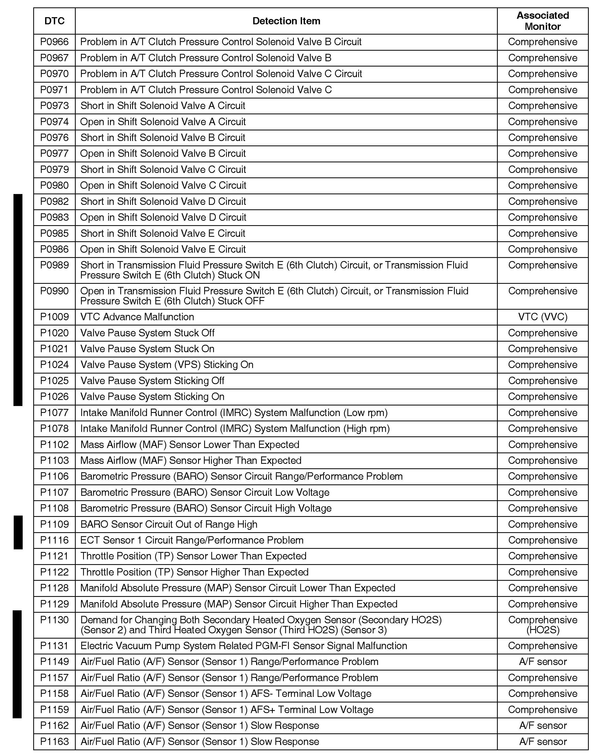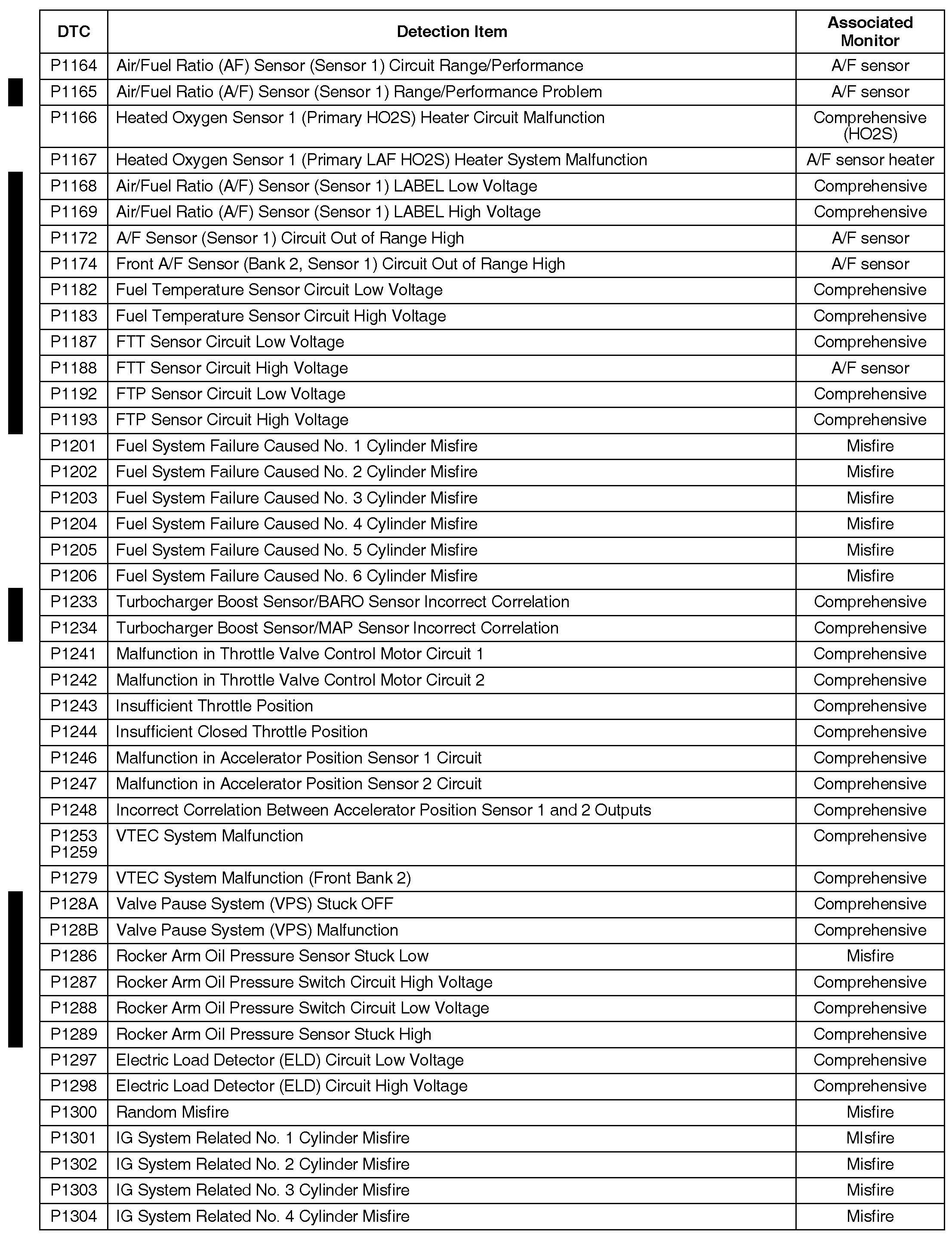 Following is a list of all OBD II DTCs and their associated monitors for all Acuras with OBD II. No one model has every DTC in the list.