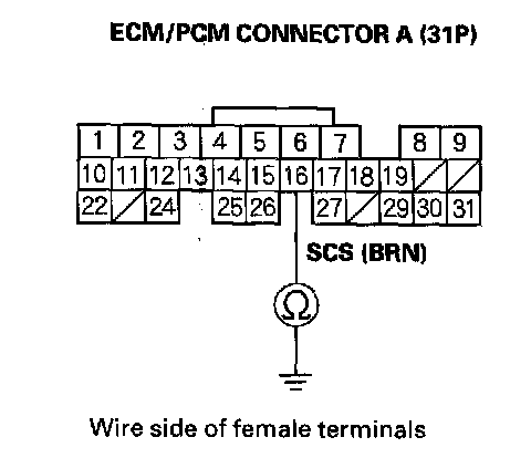 16. Check for continuity between ECM/PCM connector terminal A16 and body ground.