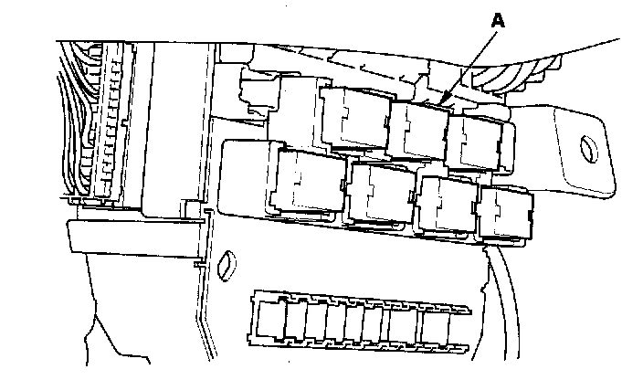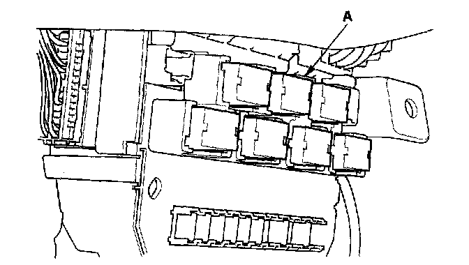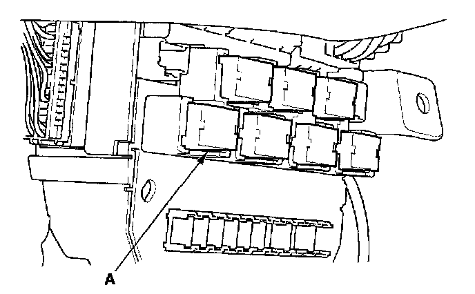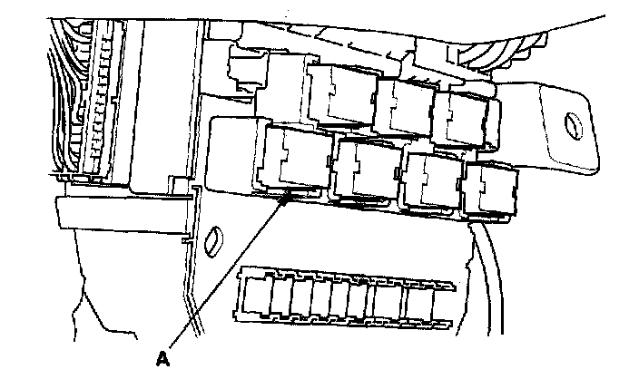 26. Remove the left kick panel, then remove PGM-FI main relay 1 (FI MAIN) (A) from the under-hood fuse/relay box.