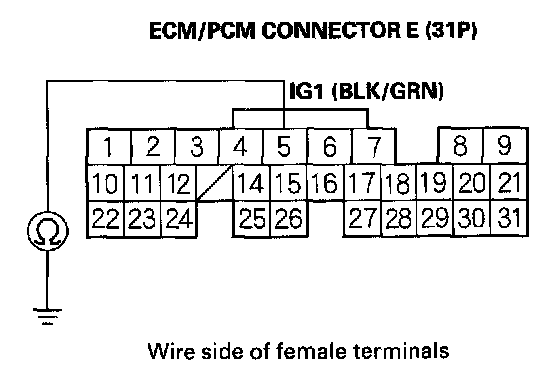 35. Check for continuity between ECM/PCM connector terminal E5 and body ground.
