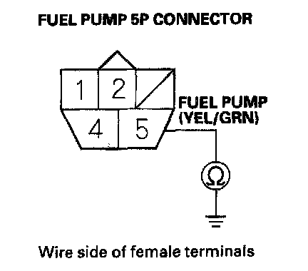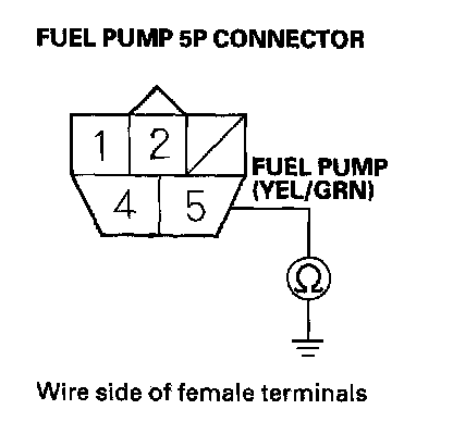 41. Check for continuity between fuel pump5P connector terminal No.5 and body ground.