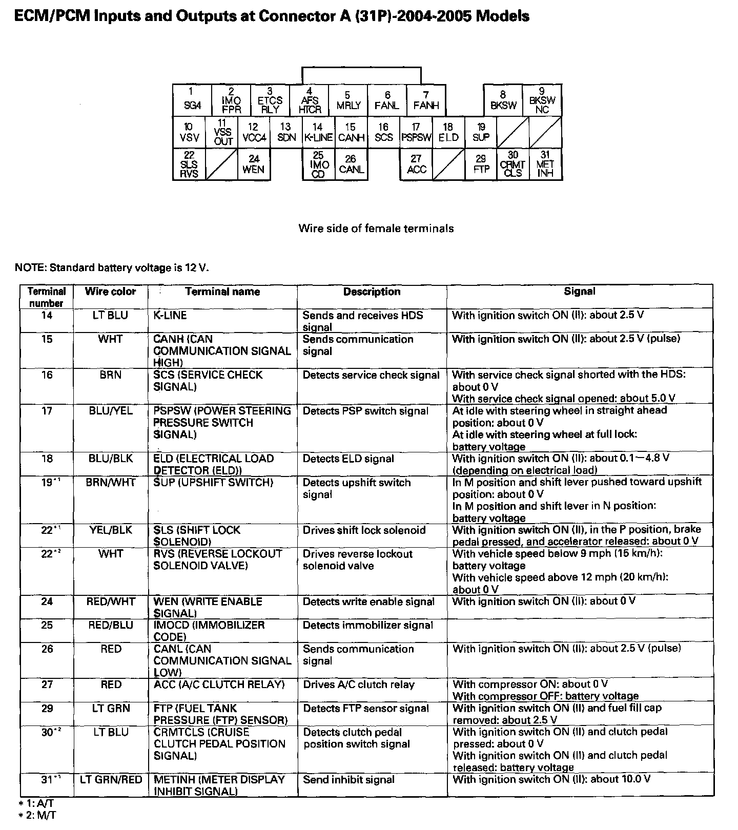 ECM/PCM Inputs And Outputs At Connector A (31P) Part 2: