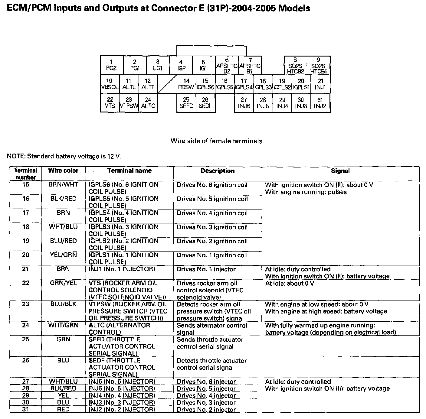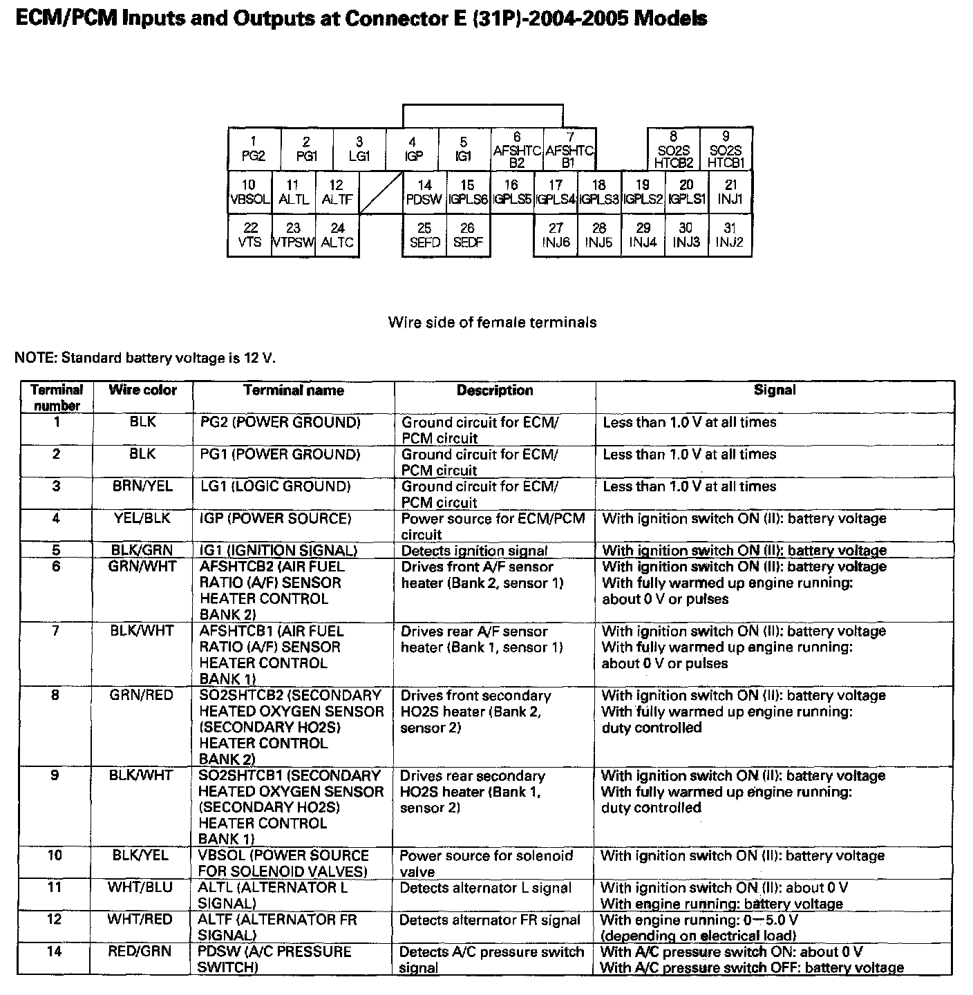 ECM/PCM Inputs And Outputs At Connector E (31P) Part 1: