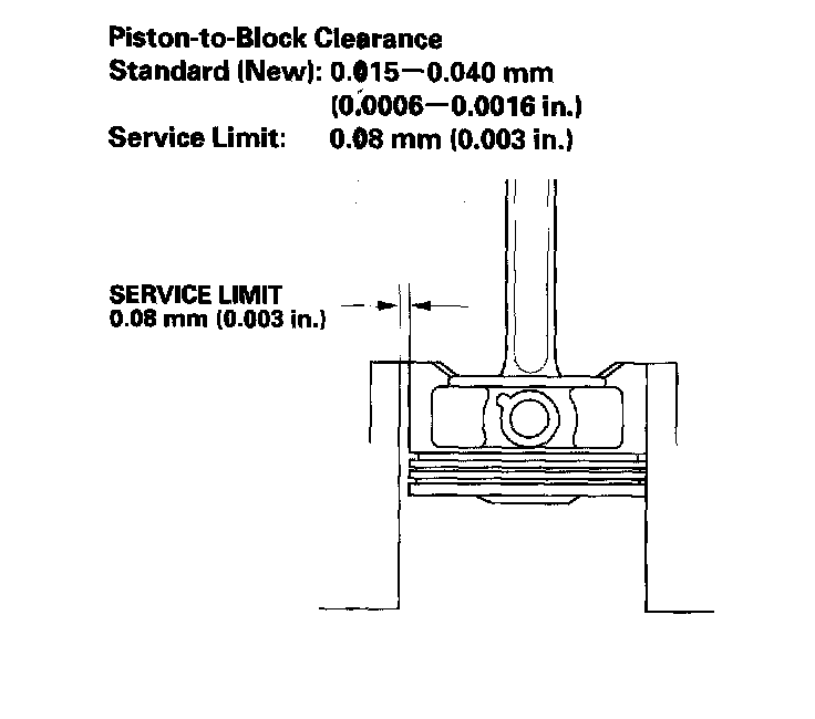 Cylinder Bore Diameter and Connecting Rod Bore Code LocationsCalculate the difference between cylinder bore diameter and piston diameter. If the clearance is near or exceeds the service limit, inspect the piston and cylinder bore for excessive wear.