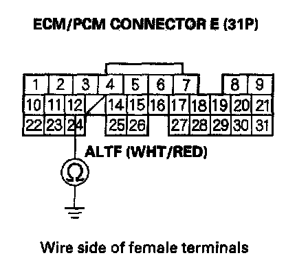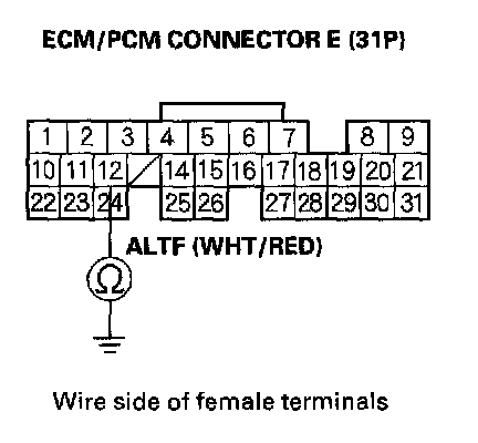 16. Check for continuity between body ground and ECM/PCM connector terminal E12.