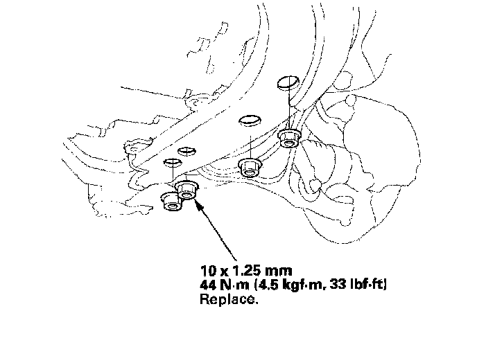 12. Remove the transmission lower mount nuts.