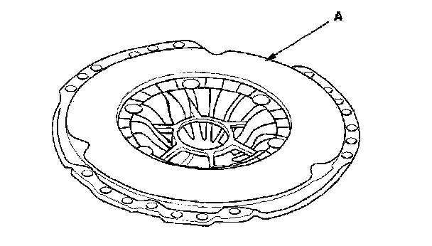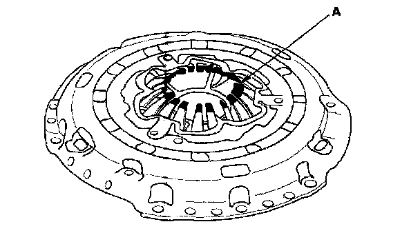 6. Inspect the fingers of the diaphragm spring (A) for wear at the release bearing contact area.