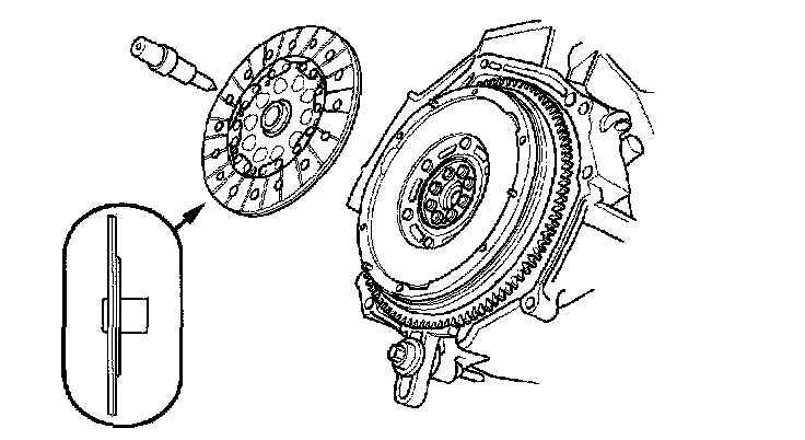 1. Temporarily install the clutch disc onto the splines of the transmission mainshaft. Make sure the clutch disc slides freely on the mainshaft.