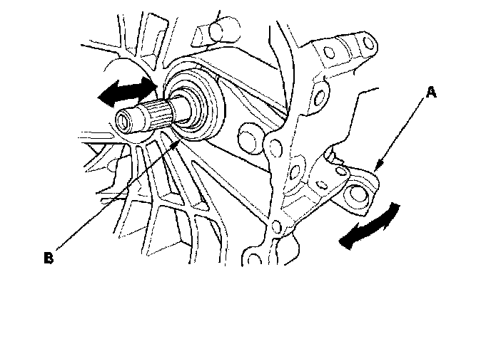 8. Move the release fork (A) right and left to make sure that it fits properly against the release bearing (B) and that the release bearing slides smoothly. Wipe off any excess grease.