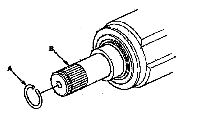 8. Remove the stop ring (A) from the driveshaft (B).
