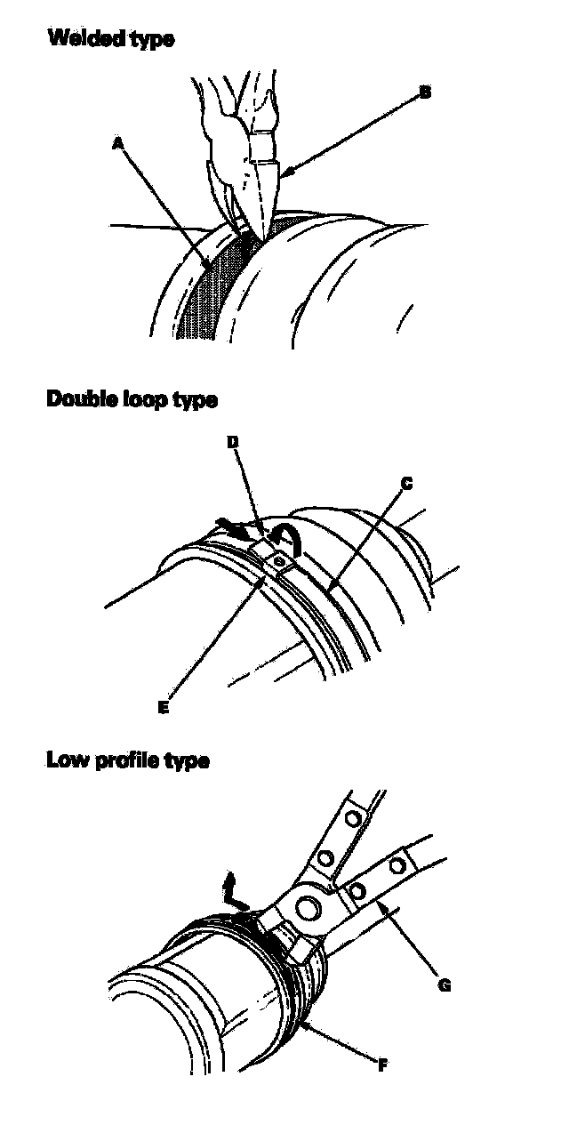 - If the boot band is a low profile type (F), pinch the boot band using commercially available boot band pincers (G).
