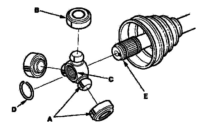 6. Mark the spider and driveshaft (E) to identify the position of the spider on the shaft.