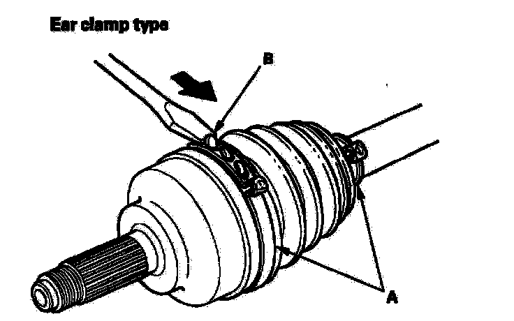 - If the boot band is a welded type (A), cut the boot band (B).