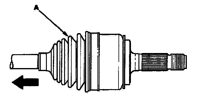 2. Slide the outboard boot (A) partially to the inboard joint side. Be careful not to damage the boot.