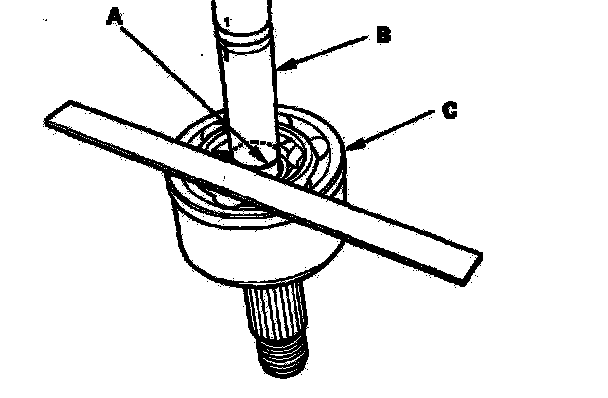 4. Make a mark (A) on the driveshaft (B) at the same position of the outboard joint end (C).