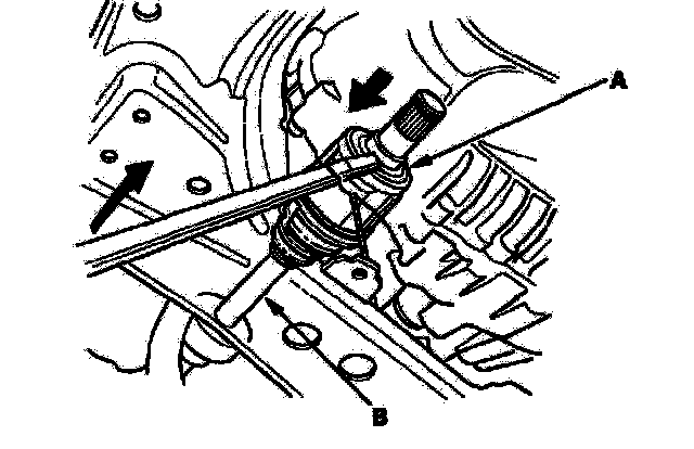 10. Left driveshaft: Pry the inboard joint (A) from the transmission housing with a prybar. Remove the driveshaft as an assembly.