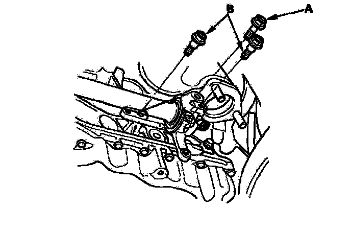 5. Remove the flange bolt (A) and two dowel bolts (B).