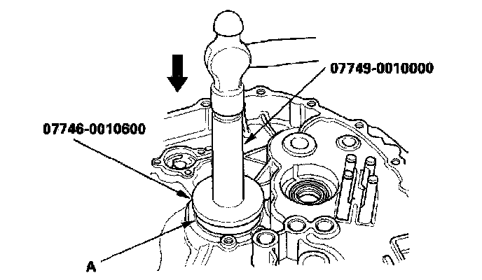3. Install the new needle bearing (A) using the special tools.