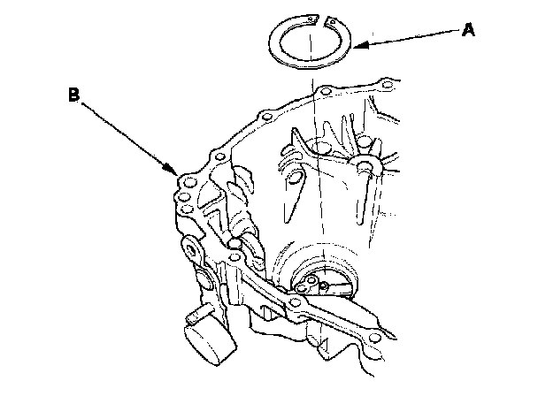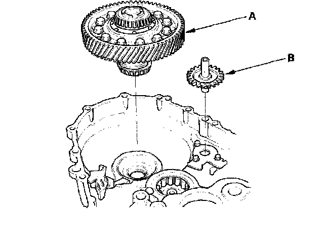 4. Install the differential assembly (A) and oil pump shaft (B).