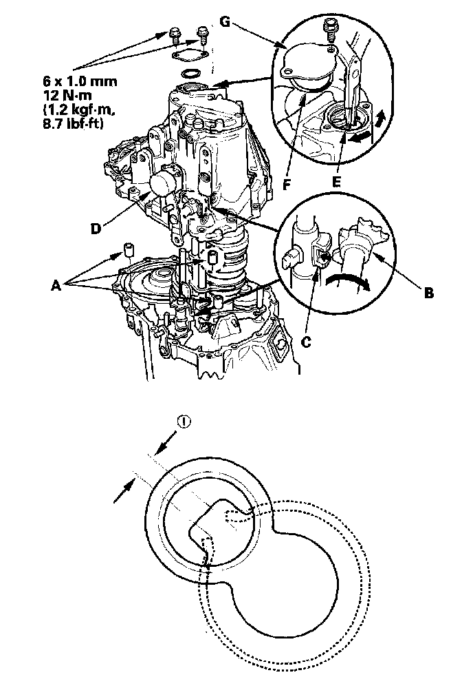 20. Install the new 37.7 mm O-ring (F) and transmission case cap (G).