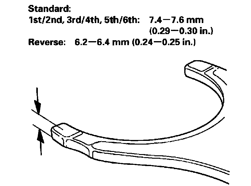 - If the thickness is not within the standard, replace the shift fork.